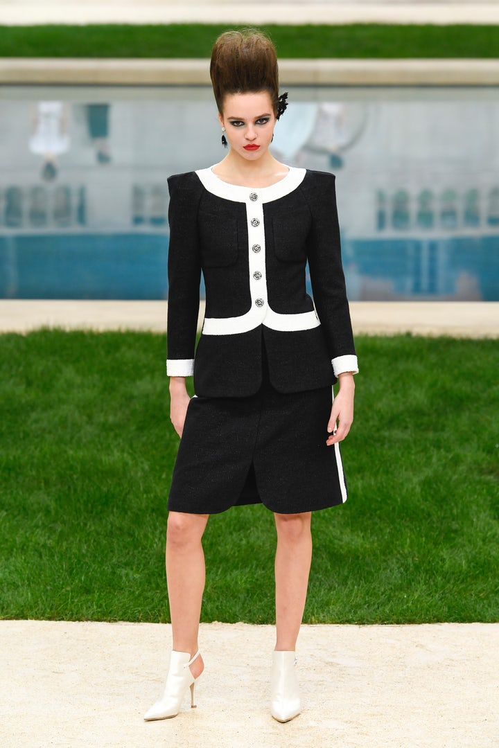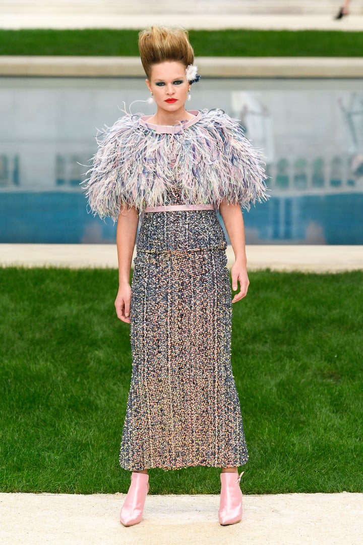 One thing Karl Lagerfeld knows how to do very well is transform Chanel’s power tweed suit into diferent newely dated creations.
