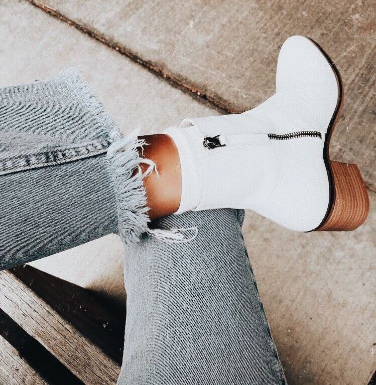 Take this pair of white leather ankle boots, for example. You can easily wear them with a pair of ripped jeans and a matcing top, or with a black dress. At the same time, imagine how good this pair would look with a total red outfit. I can dream it already.