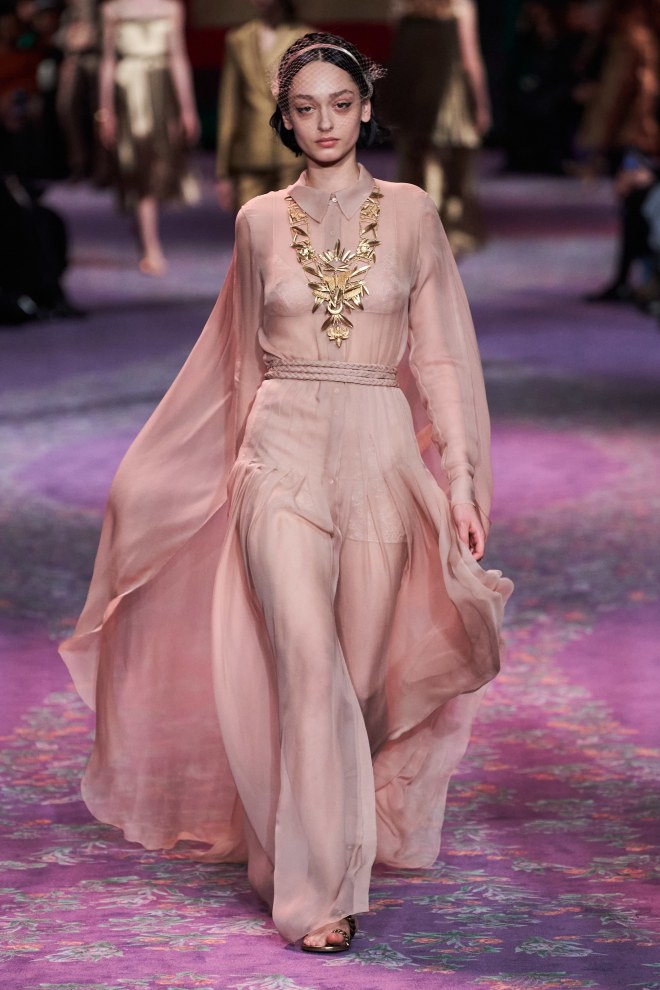 Gold, rose gold, soft pink, bronze and white. All colors of aristocrats, all colors of high fashion – the kind that apparently Ms Chiuri knows how to work very well. That type of elegance that you expect to see from a grand fashion house, such as Dior, was shown in this very artistic show.
