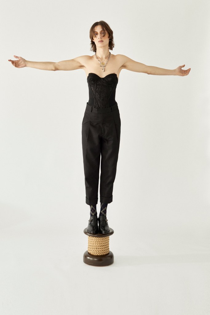 Westwood also made a good use of pludging necklines in most of her clothes, from dresses to blouses, the models had a big part of their sternum exposed.