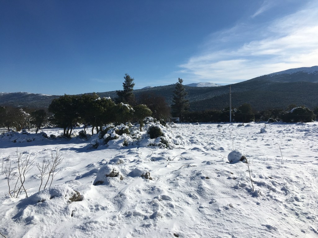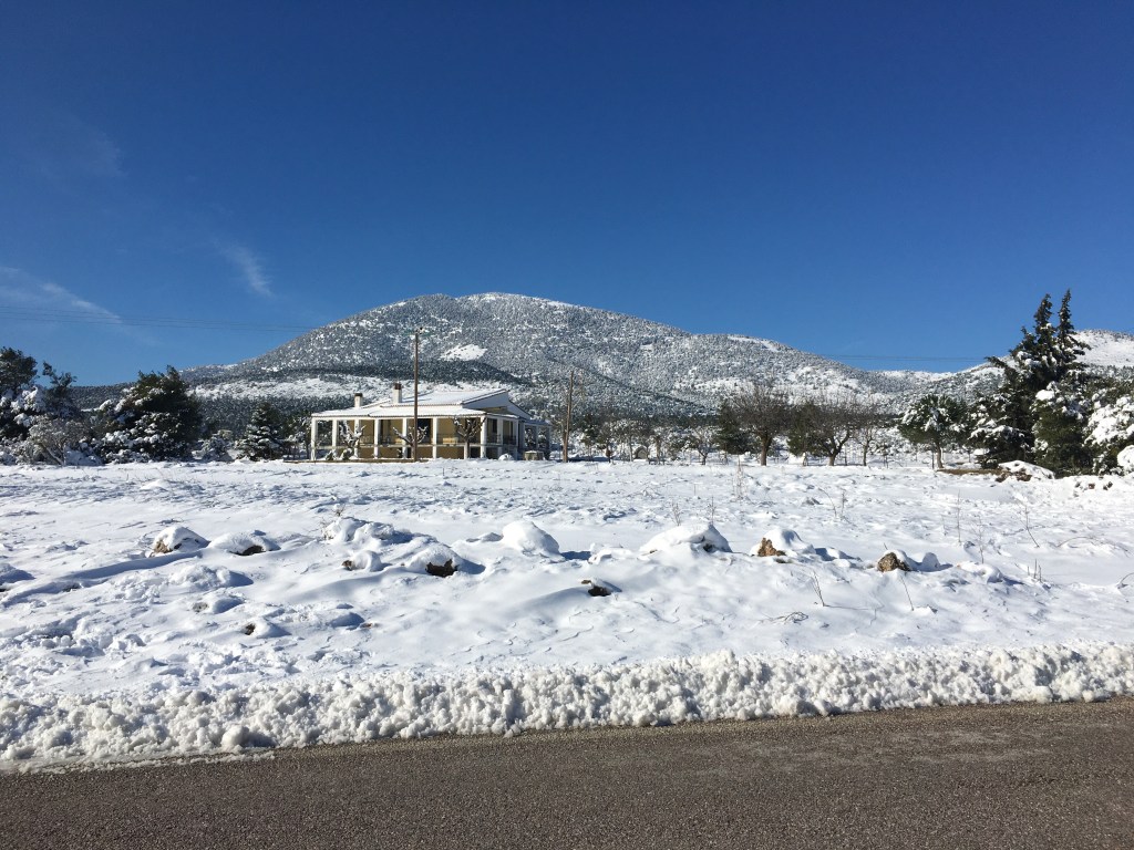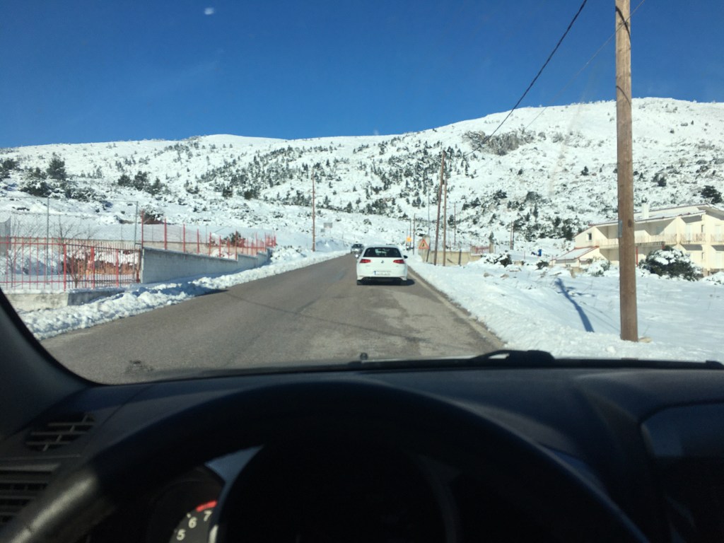 A while back, at the coldest day Greece has ever seen, friends and I decided to visit the mountains. A nearyby village that is actually not that high up the mountains, but a few minutes away from a beach. Greece is filled with paradox places, combining beach and mountains at the same area.