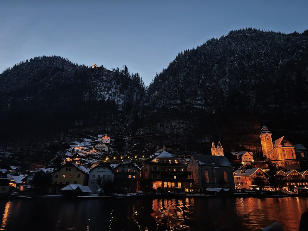 Dress as warmly as possible, because the temperature there is often below 0. Also, if visiting during winter like me then be prepared for few cafes and restaurants being open. Apparently, Halstatt’s market and all actually closes for two-week total. So, there is pretty not many things to do. However, the scenery of the town from the side as the sun sets it’s exactly what you’re going there for.