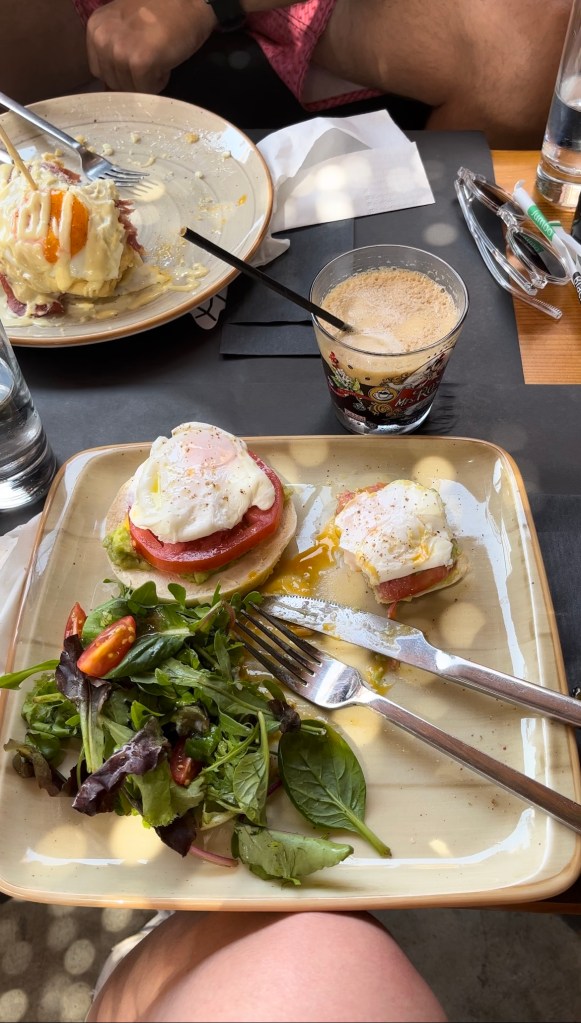 We ate two kinds of brunch, one at Kalamia and one at Opsianos. I opted for poached eggs and a much healthier breakfast since it’s summer and I would be at the water for a long time. It was also my first time tasting avocado cream and I really enjoyed it. Very refreshing, perfect for summer.