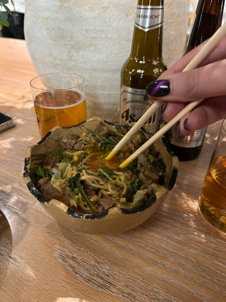 Let’s start with me saying that I am not a big sushi fan, I like my food mostly cooked therefore if you are here hoping to see some sushi dishes, then this post is not for you. We opted for cooked meals, like sando katsu, smash burger (because tik tok made us buy it), dumplings with beef tartar, noodles with ribs and some kimchi, because why not. We wanted to also try the ramen, but let’s be honest and realistic here, it was just the two of us and there was no way we would be able to finish everything. The menu was large, printed on a piece of paper that had free space for you to write down the portions you wanted for each dish. There were so many great options and so many starters and main dishes to try from, but when it’s just two people you can’t eat everything. I feel like I should visit again just so I can order the rest of the menu.